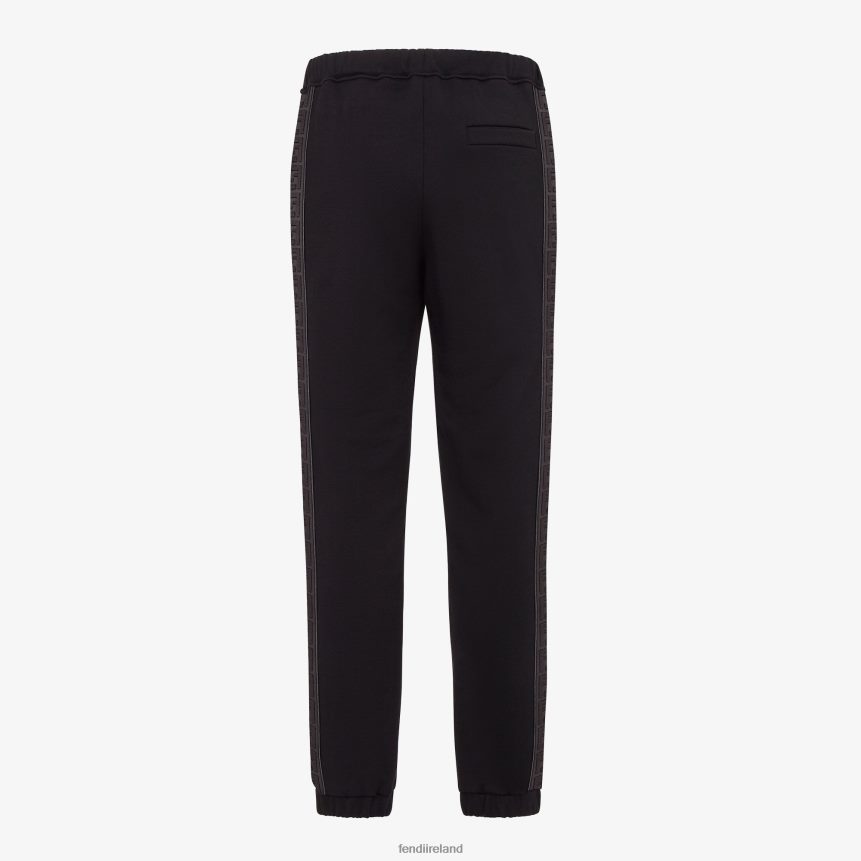 Jogging pants with stretch inserts at the waist and welt pocket. Made of black cotton jersey. Ribbon with embossed matching-colour FF motif applied on the sides.