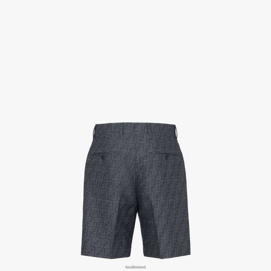 Bermuda pants with belt loops at the waist. Side pockets and welt pockets with button on the back. Concealed zipper closure. Made of fabric with a jacquard micro Fendi Shadow motif in blue.