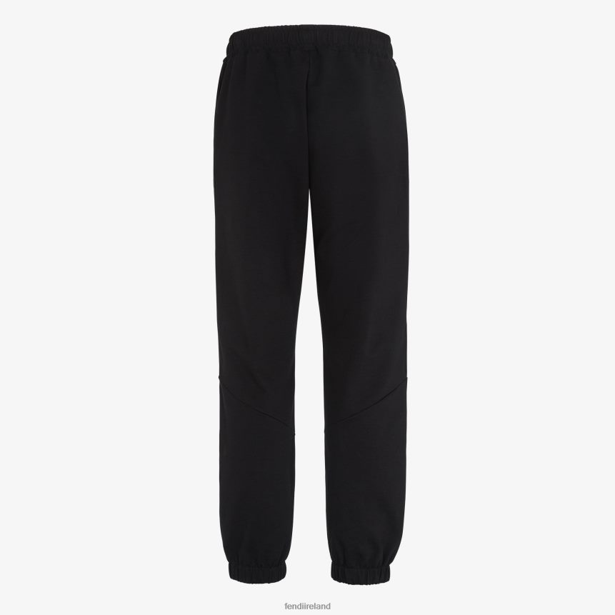 Sports trousers with elasticated waistband and elasticated inserts at the ankle. Side pockets. Made of black cotton jersey. Embellished with Fendi embroidered jacquard label on the left side.