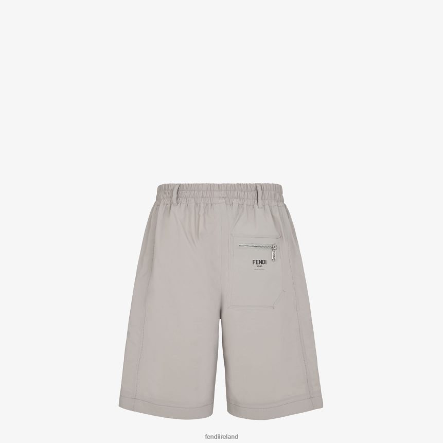 Straight shorts with elasticated waist. Side pockets and zipped coin pocket. Belt loops at the waist. Concealed zip fastening. Made of gray linen. Patch pocket with zip on the back finished with contrasting Fendi logo print and metal Fendi O'Lock slider.