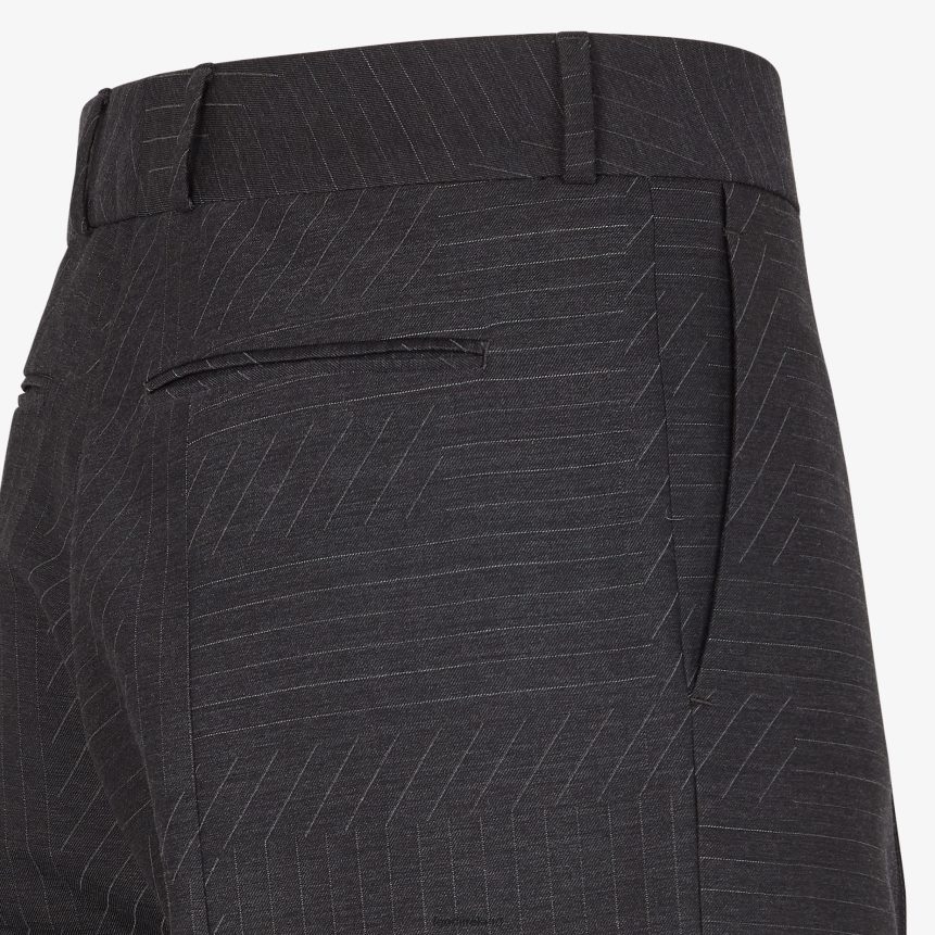 Straight-cut pants. Pockets on the sides and welt pocket on the back. Belt loops, trouser crease and back slit in the hem. Zipper closure. Made of wool with an all-over dark gray Fendi Shadow motif.