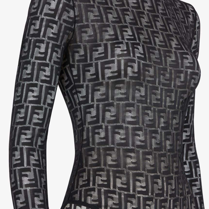 Close-fitting body with round neck and long sleeves. Half zip fastening on the back. Made of lace with all-over black FF motif.
